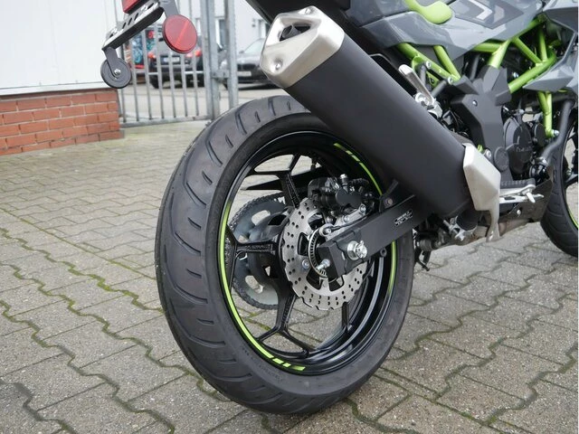 Mit Kawasakis einzigartiger Sugomi-Designphilosophie, die sofort ins Auge fällt, präsentiert sich das kleinste Mitglied der Z-Familie. Auffallen und ein starkes Naked-Bike-Statement setzen endash genau dafür ist sie da. Der freiliegende Gitterrohrrahmen verbindet sich mit der minimalistischen, aggressiven Z-Verkleidung und lädt zu sportlicher Fahrweise ein. Der 15-PS-Motor (11 kW) ist sowohl einsteigerfreundlich als auch so sportlich, wie man es von Kawasaki erwartet. Die Z125 kann mit dem A1-Führerschein oder mit dem Autoführerschein ab 25 Jahren (B196) gefahren werden und bietet ideale Voraussetzungen für Führerschein-Neulinge.